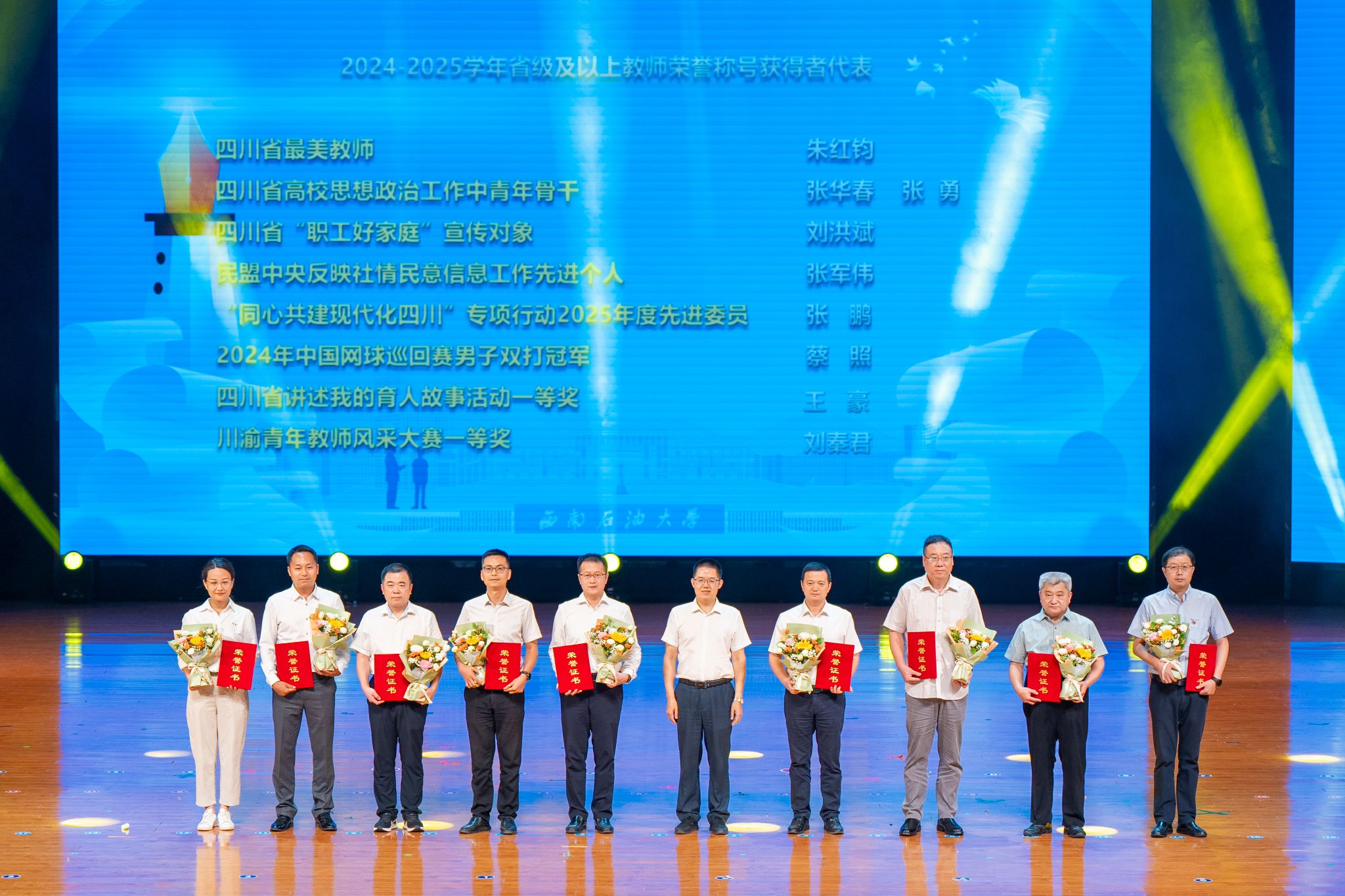 会上表彰了2024-2025学年教师先进集体和个人,礼赞老师们为学校教育事业高质量发展所作贡献。全体校领导为获奖代表颁奖。