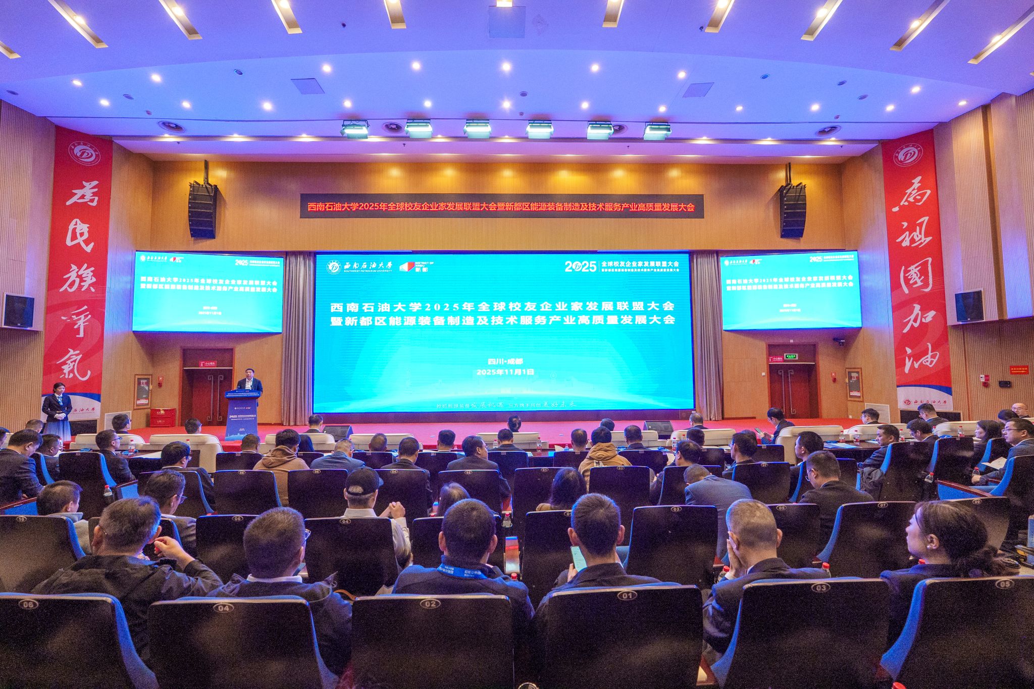 11月1日,学校六十七周年校庆日之际,2025年全球校友企业家发展联盟大会暨新都区能源装备制造及技术服务产业高质量发展大会在成都校区举行。