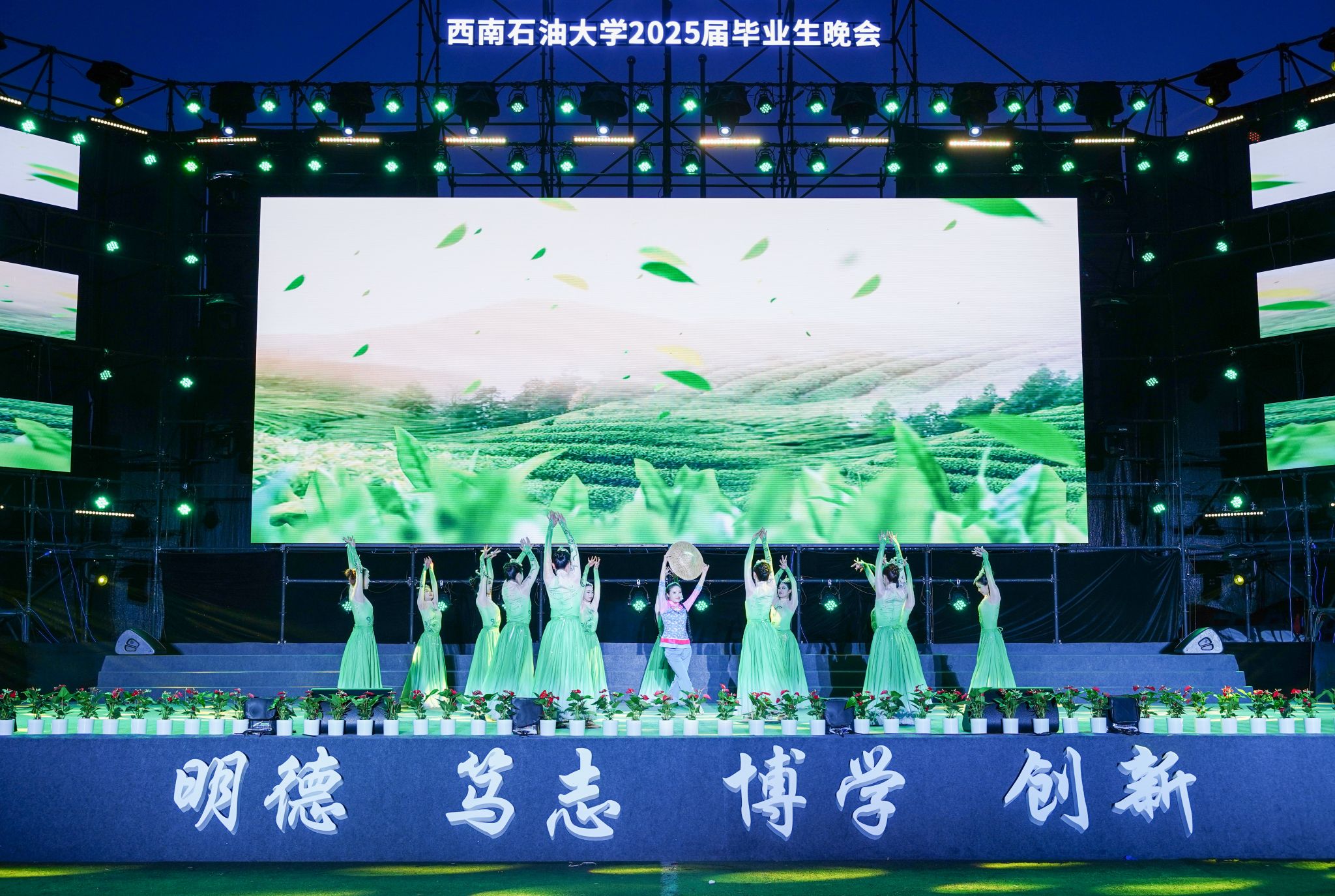 6月16日晚,我校“青春石大 飞翔未来”2025届毕业生晚会在成都校区一期田径场举行。3万余名师生、校友、家长线上线下观看晚会。天南海北的石大人当晚共上了一堂毕业主题的“大思政课”。