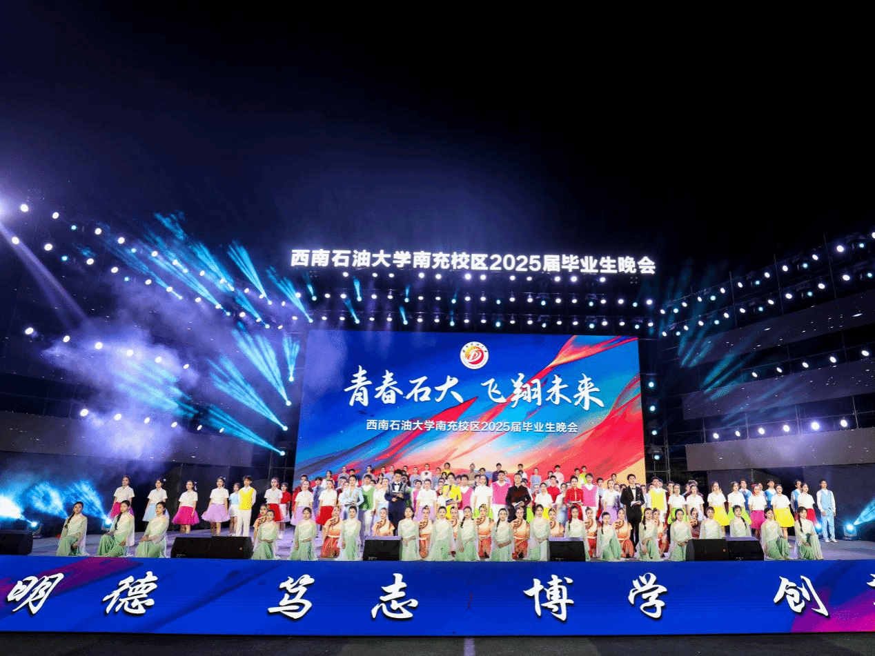 6月17日晚,龙井湖畔华灯璀璨,运动场上青春飞扬。2025届“青春石大 飞翔未来”毕业生晚会在南充校区田径运动场隆重举行。3000余名师生观看演出,共同见证这场青春盛典。