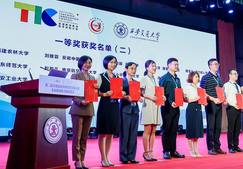 第二届全国高校教师教学创新大赛一等奖颁奖情景(左二为王艳)