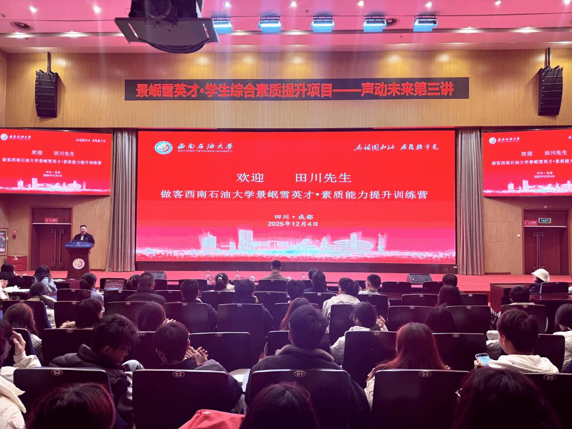 12月4日,由四川taptap网页版教育发展基金会、党委学生工作部(处)主办,经济管理学院、新能源与材料学院承办的景岷雪英才・素质能力提升训练营——从“不敢说”到“说得好”:演讲表达力提升实战活动在图书馆学术报告厅举办。四川广播电视台主持人、主任播音员田川担任主讲。